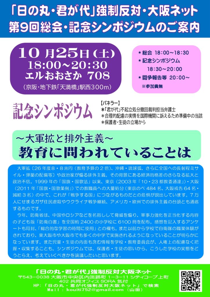 10月25日(土) 18:00~20:30             会場:エルおおさか 708                             *総会 18:00~18:30